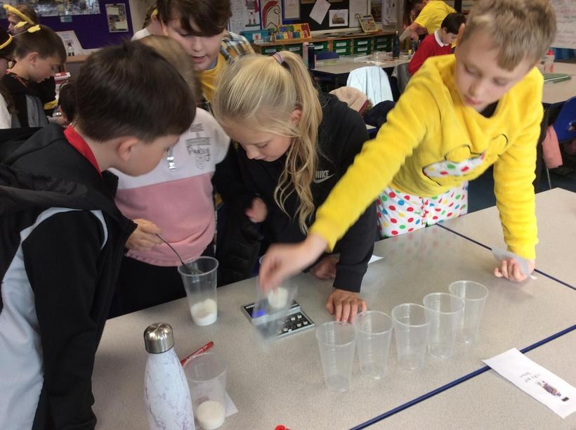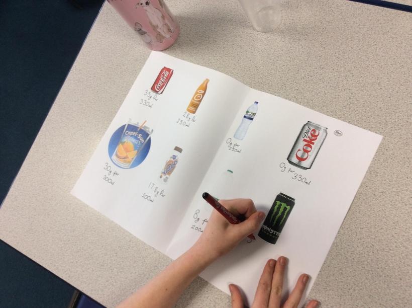Beech class worked together in small groups to investigate and compare the amount of sugar to be found in different drinks.