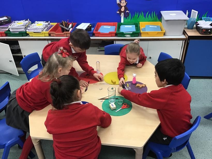 Today in Elm class, the children were given a range of objects and asked to group them into five different categories the children worked together.