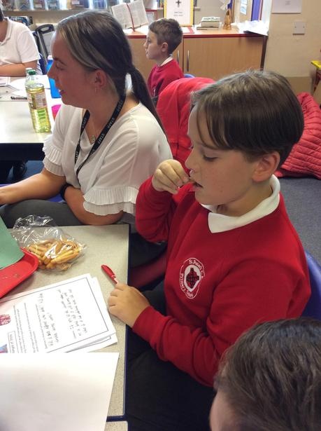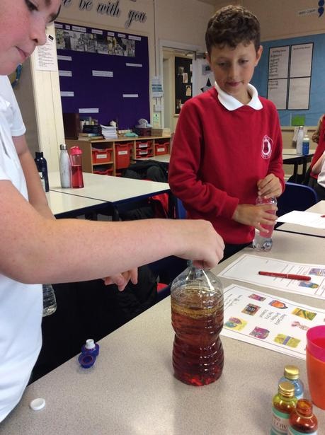 Firstly, we created 'Red Cabbage Soup' linking it to Charlie and the Chocolate Factory. Once we had the soup we strained to cabbage. by doing this we created 'anthocyanins. These change their colour depending on the PH of the solution added.