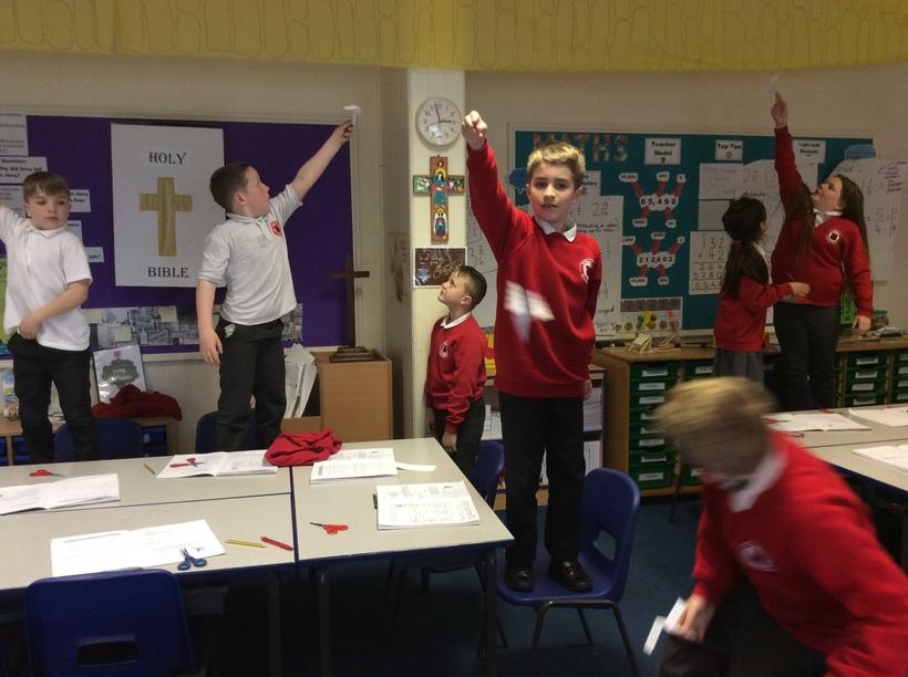 We experimented with paper spinners and then worked with our groups to decide on what we could change about them.  We are now going to choose one of the variables to change and investigate what happens.