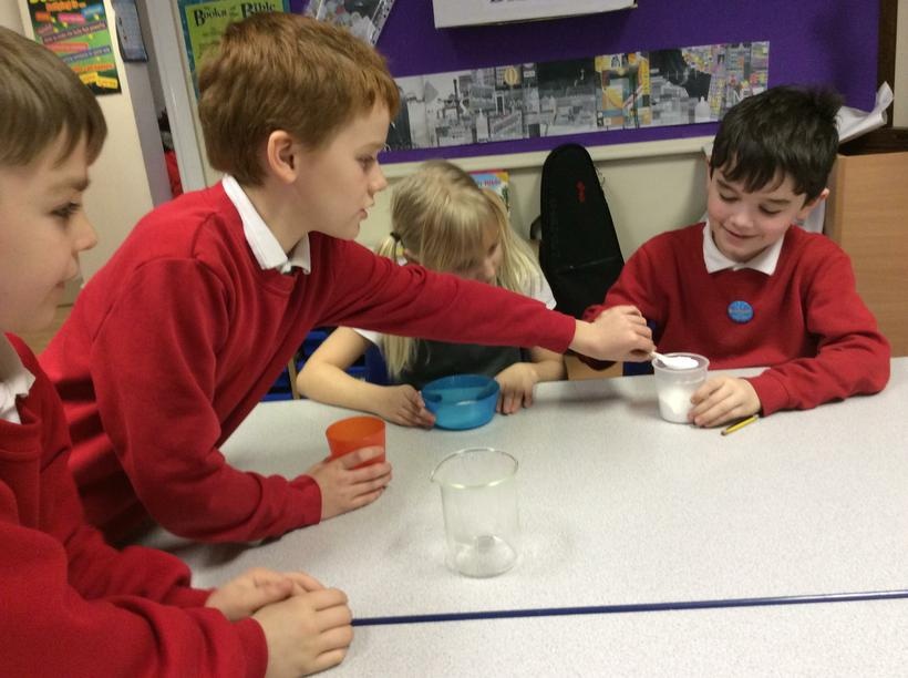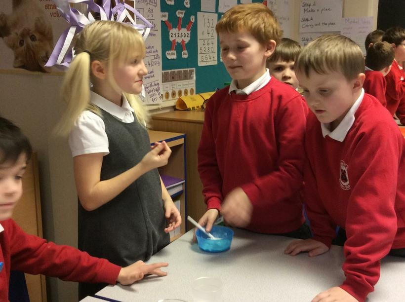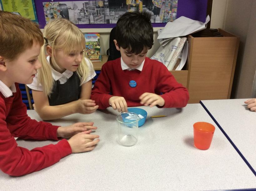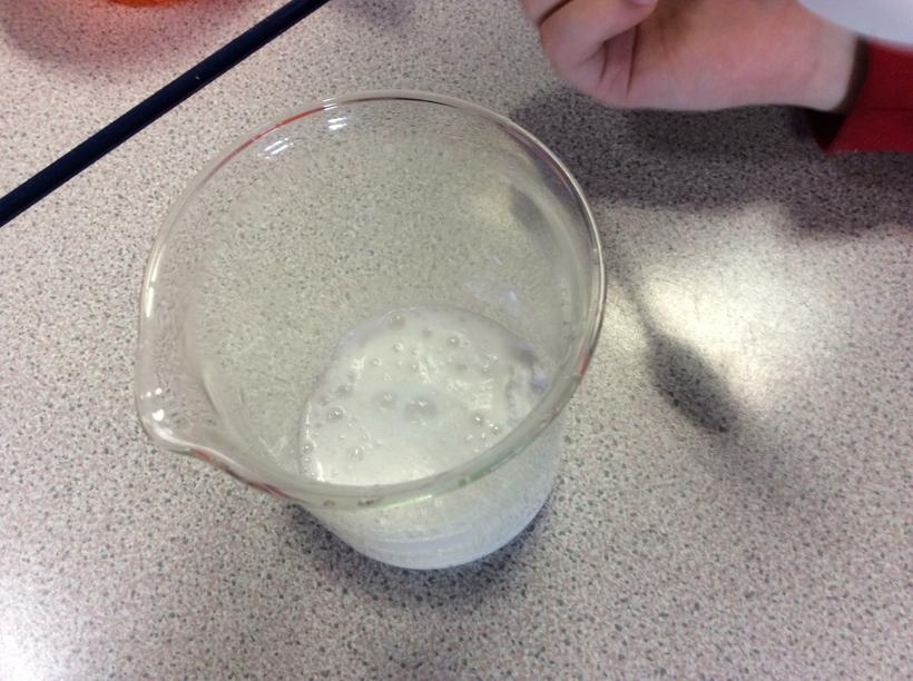 We were excited by the chemical reaction we created when mixing citric acid, bicarbonate of soda and water together. It fizzed and frothed and we explored how this change was irreversible.