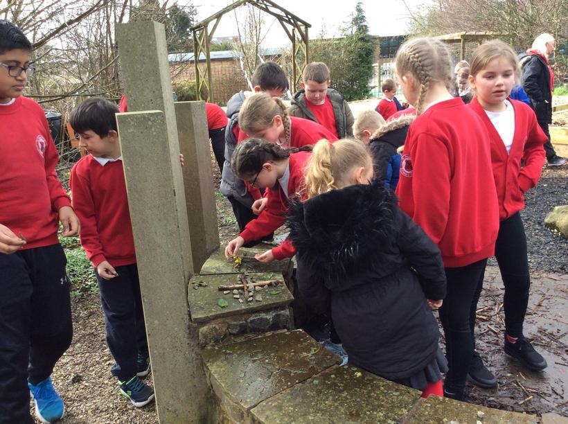 As part of Holy week, Beech class joined up with Birch class to create a cross using natural materials in the outdoor garden.
