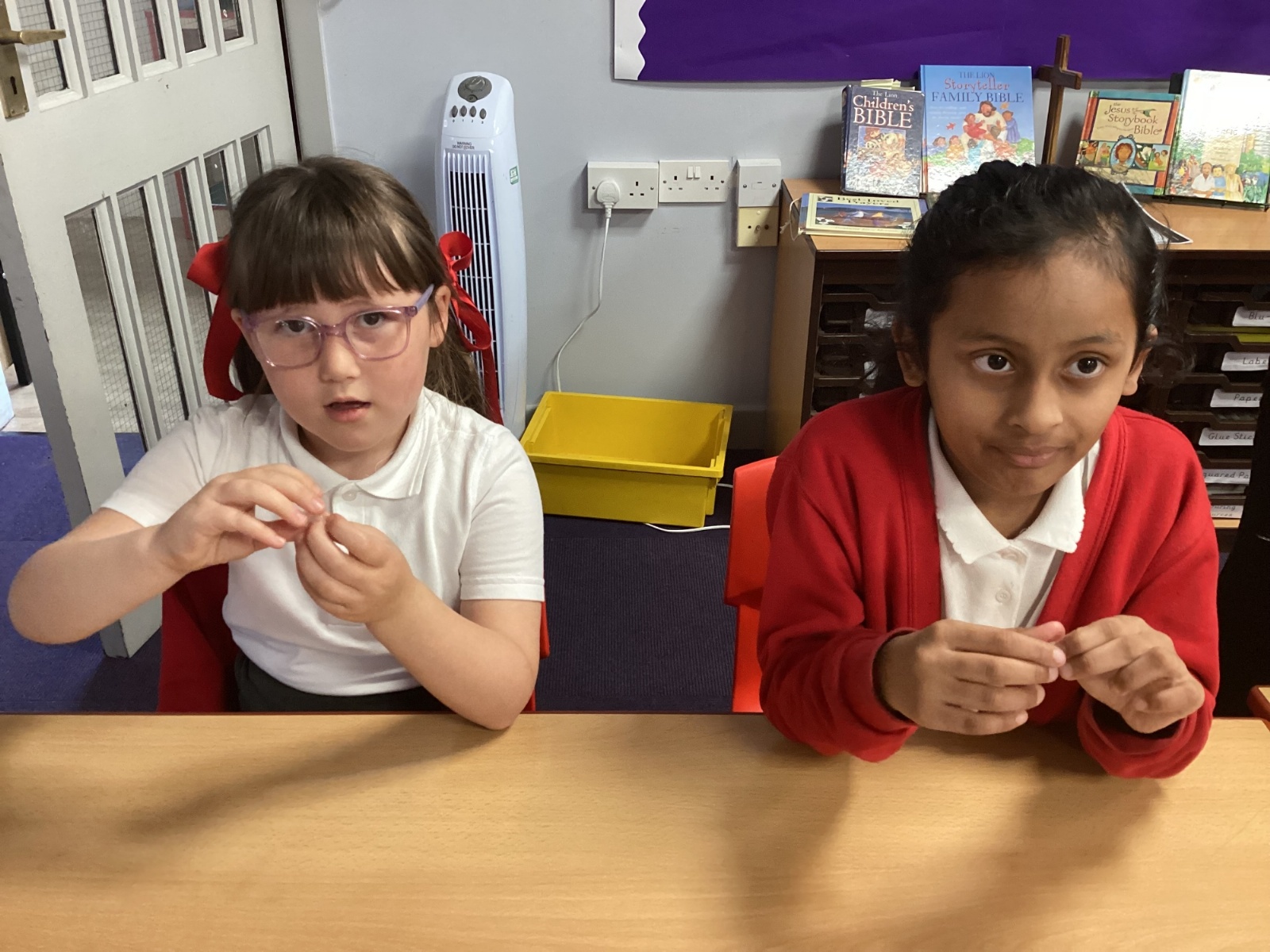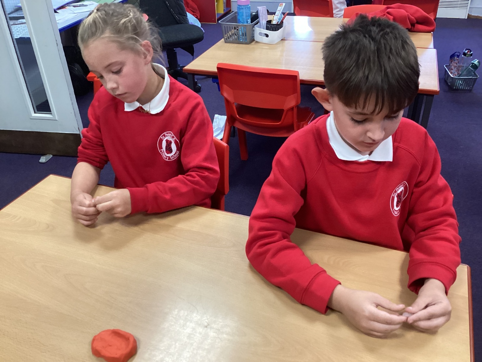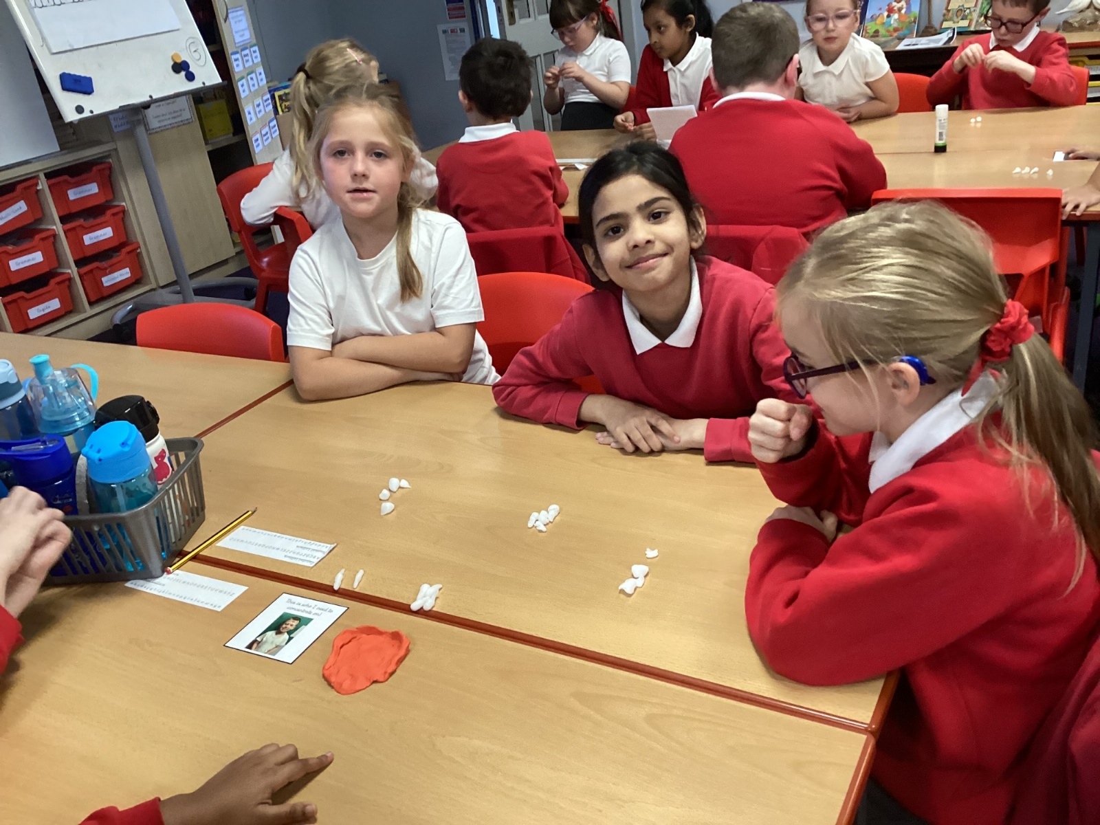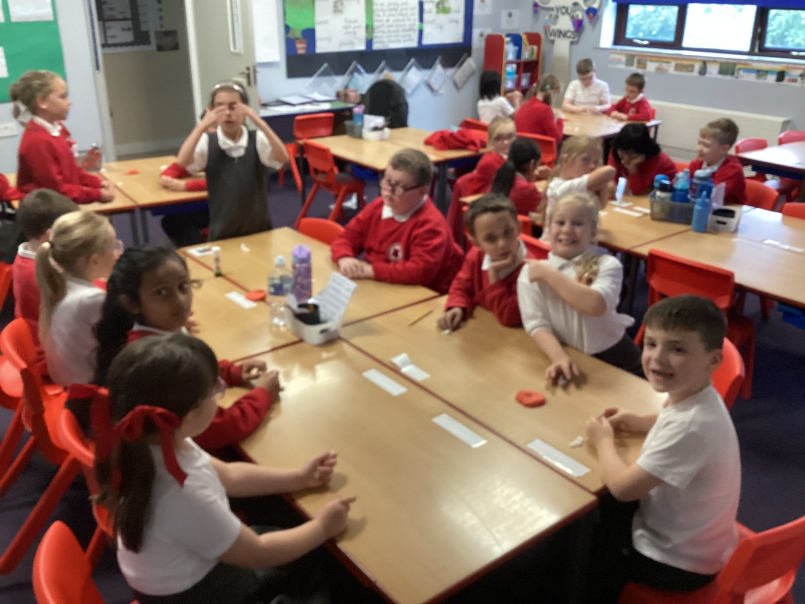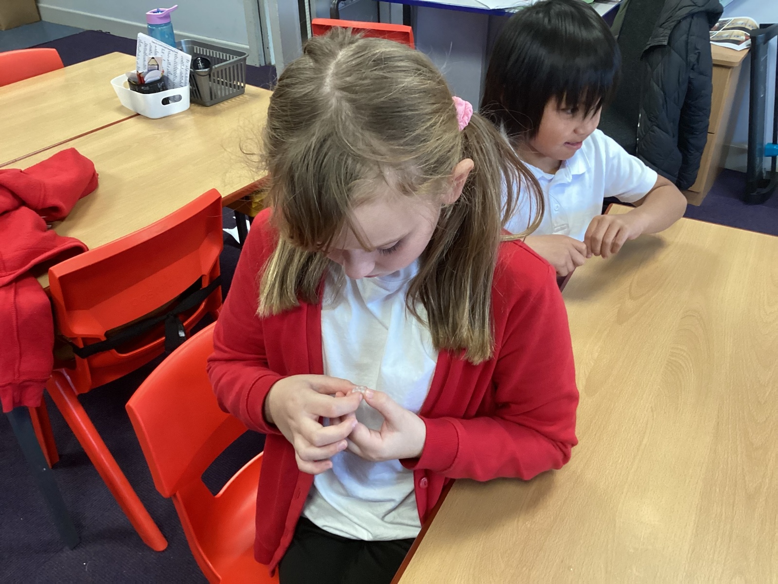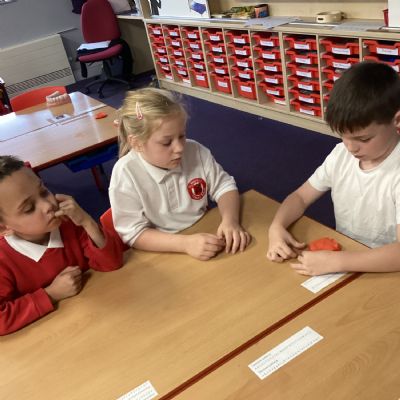 Following on from the children’s learning about the function of teeth, we made our own set of teeth using polymorph and red plasticine as the gum.