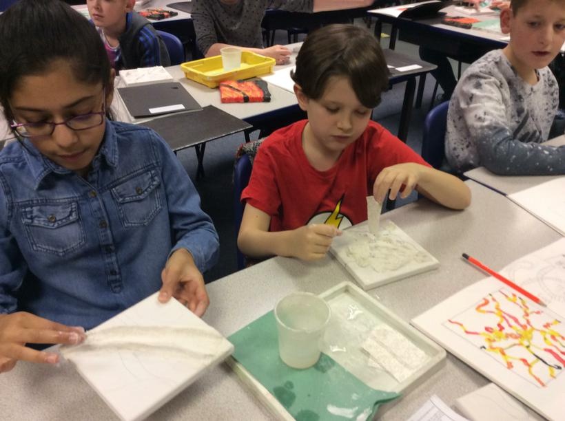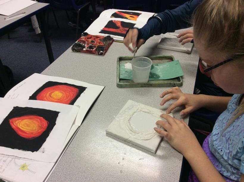 Years 5 and 6 in the Upper Juniors have been finding out all about Volcanoes. In art, we have studied abstract art and used images of lava explosions to inspire an abstract relief painting.