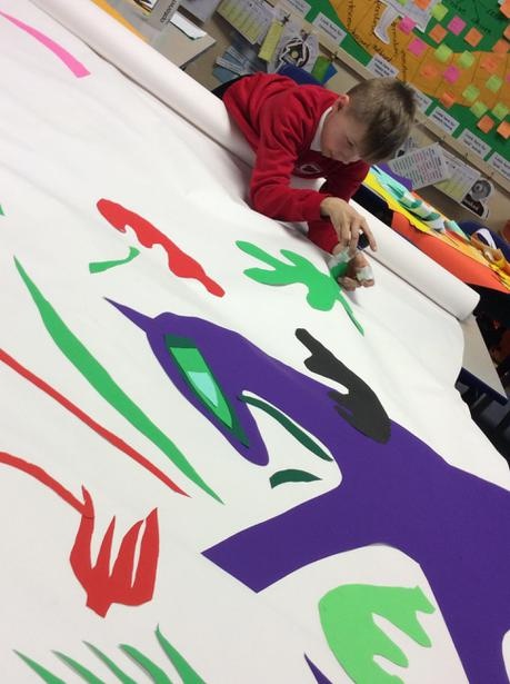 We worked as a fantastic team! A team of boys controlled where each cut out should be pasted according to their artistic eye.