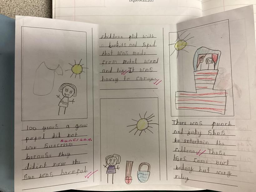 Some fantastic writing from Year 1 about sea-side holidays in the past.